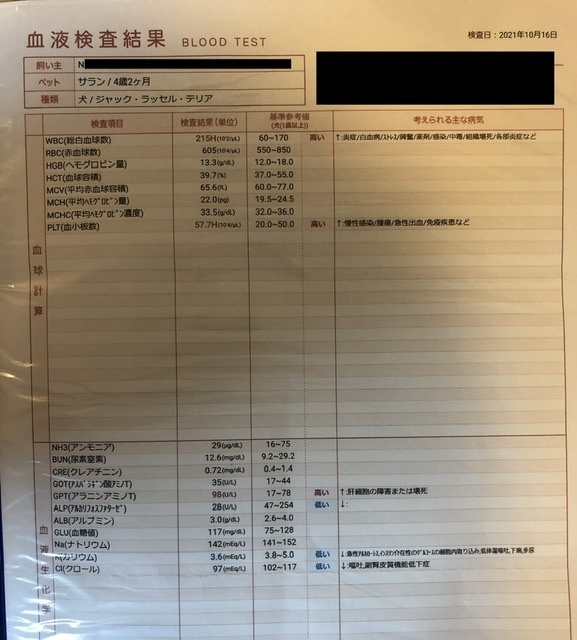 【↑担当医である奈良動物二次診療クリニック 米地先生から頂いた資料です】