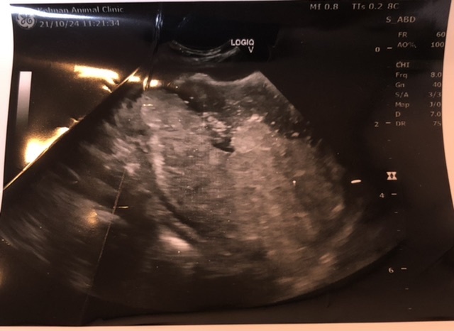 しかしながら、10月中旬から食欲不振が続き嘔吐を繰り返すようになったため近所の病院へ行くと、超音波検査の結果胃幽門部に腫瘍病変を疑う肥厚を認めるとのことから大きな病院で内視鏡化での生検、CT画像での腫瘍の範囲を決定するよう勧められ別の病院を紹介されることになりました。