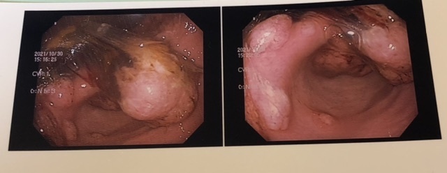 検査当日、胃幽門部に複数のポリープを認め悪性の可能性がある。胃の手術はリスクが高く手術を行う場合の成功の確率は2割であり、手術が成功したとしても僅かな延命になる可能性もある。場合によっては1年もつかどうか、、、という話まで聞くことになり愕然としました。
