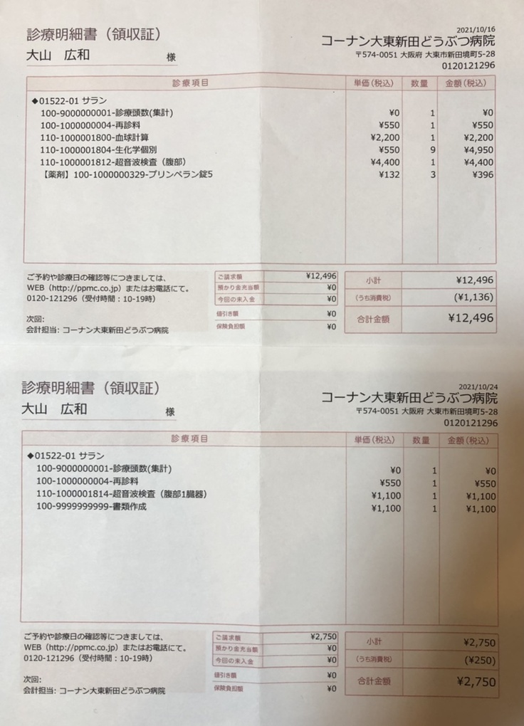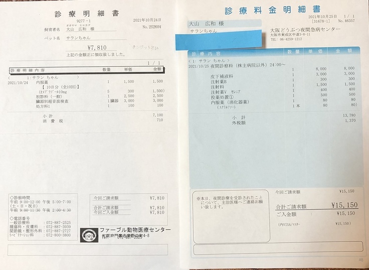 ※獣医曰く、再発の可能性が高い病気であり今後定期検査を受診していく必要があります。