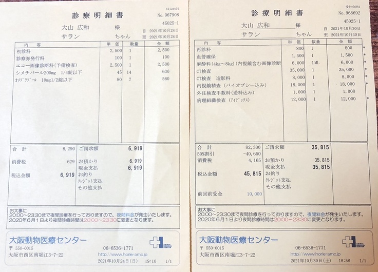 サランの治療費(手術費、入院費、検査費、薬代等)に使用させていただきます。