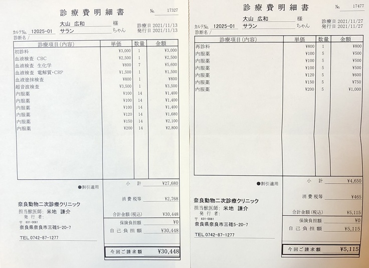 サランのこれまでの診察費、治療費、薬代および手術費用、今後の診察費、治療費、薬代に使用させていただきます。