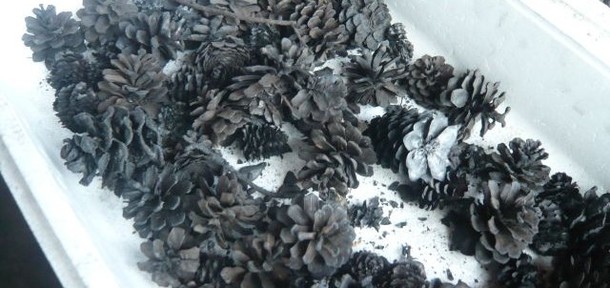 木炭の生産時にともに生み出される飾り炭。そのまま飾っていただいてもいいですが、複数組み合わせて、生け花や盆栽のように楽しんでもOK!きれいに色づいた松ぼっくり!