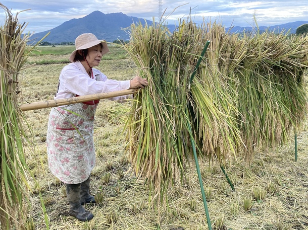 2022年は、ササニシキと亀の尾、一部コシヒカリの稲刈りがまだ残っており、ササニシキは、10月20日有志数人による手刈りをして、ハザ掛け天干しをさせて頂きます。