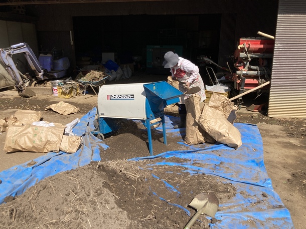 つくばにて、2023年半夏生米プロジェクトがスタートしました。4月17日、苗づくり用の土(田んぼの土)を粉砕機にかけまして、細かくしました。