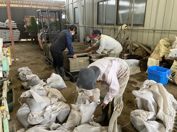 5月18日の浸種より、総計100℃を超えまして、5月22日夕方苗箱に播種(種蒔き)をさせて頂きました。コシヒカリ、ササニシキ、亀の尾の三種類です。