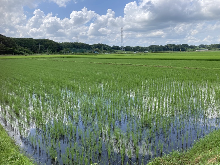 圃場の昼間は、陽射しが強いですが、夕方近くなると、圃場の水の中にいるととても気持ちがよく、筑波山を眺めながら楽しんでいます。夜になると蛍が光りながら飛んでいます。