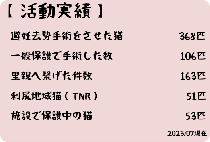 本来であれば、上記の費用合計35,000円×8匹(現在の保護数)=280,000円の費用が必要となります。