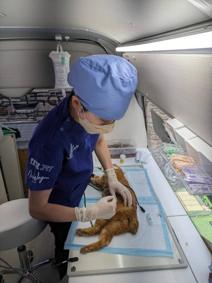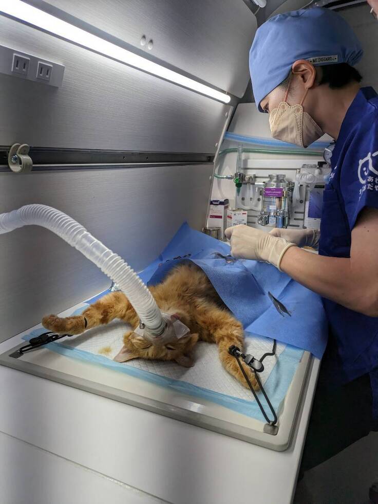 当日は麻酔から手術まで本当にすべて車内で完結しており、メス猫で約15分オス猫は約5分という非常に素早い速度で手術をしてゆきます!