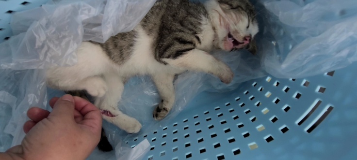 野良猫と聞いていたのですが、事故の衝撃でまだ意識がもうろうとしているのかおとなしく、体を見せてくれました。