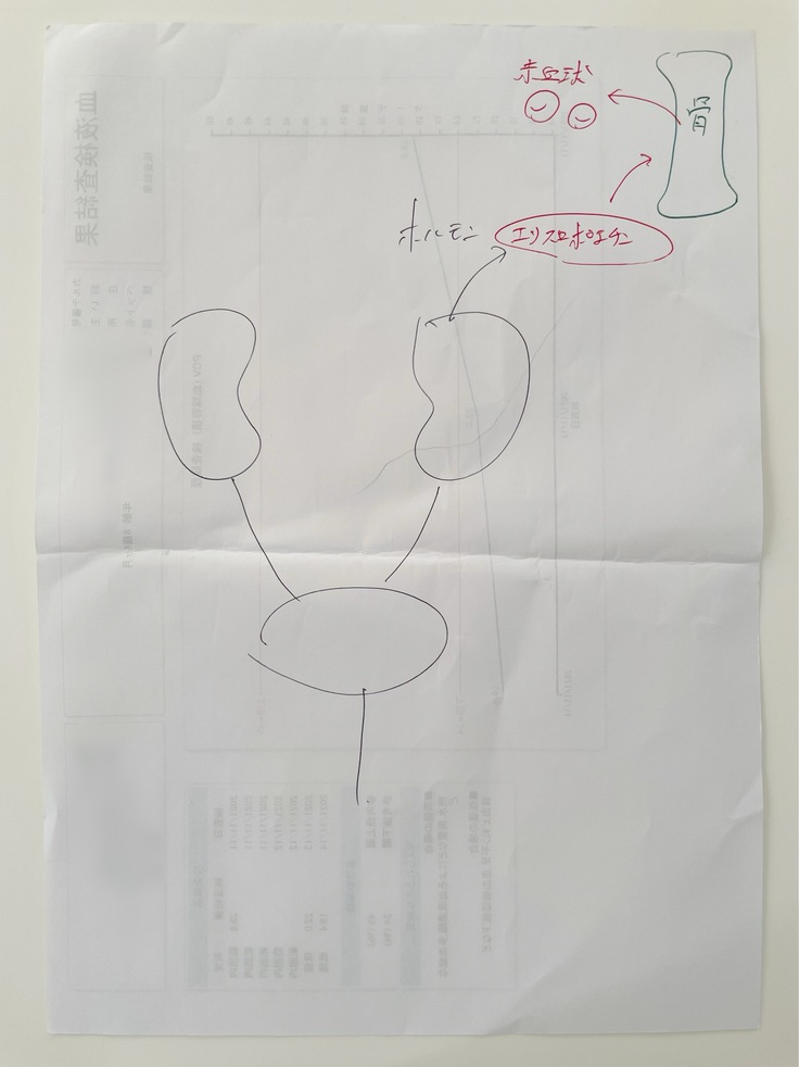 ※問題の腎臓がんかどうかの検査についてはまずは今の貧血の状況と尿毒素、腎臓の数値を改善してからのCTなどの精密検査となります。