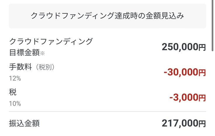 クラウドファンディング達成した場合の金額
