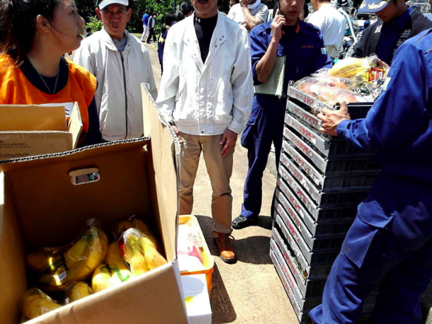 昨日までは40カ所の避難所を回っていましたが、配給所まで取りにきていただける方も増えてきたので、本日は20カ所ほどを配送でまわり、配給班は朝8時から御船小学校体育館にて配給を行いました。