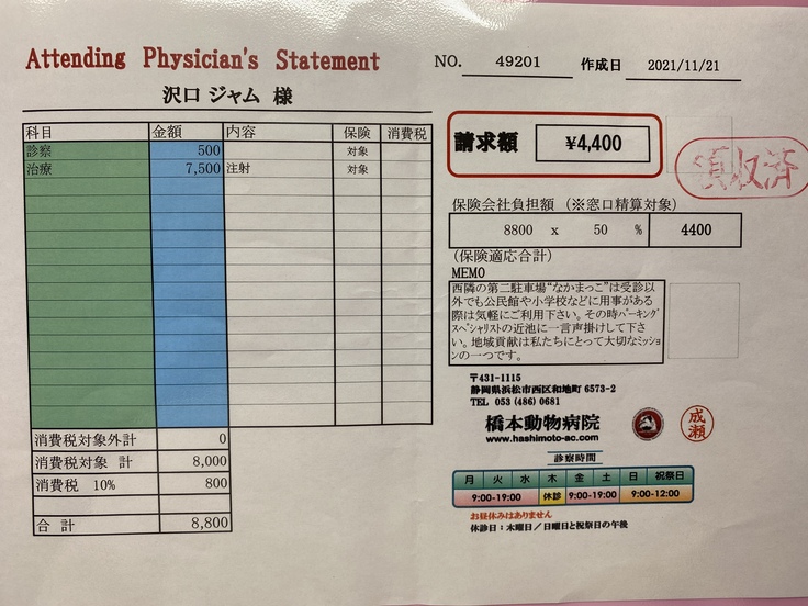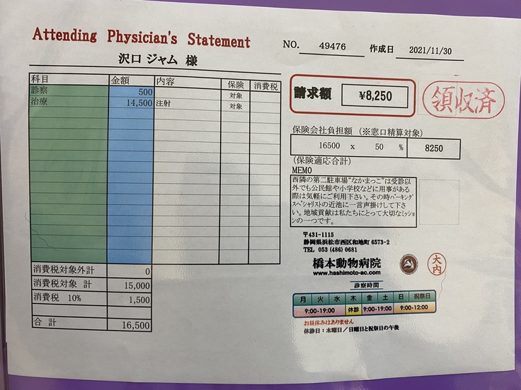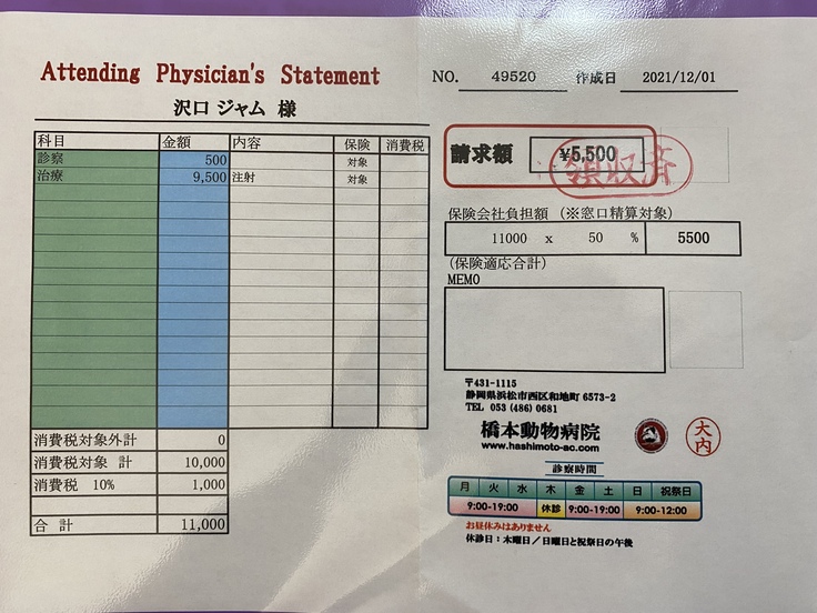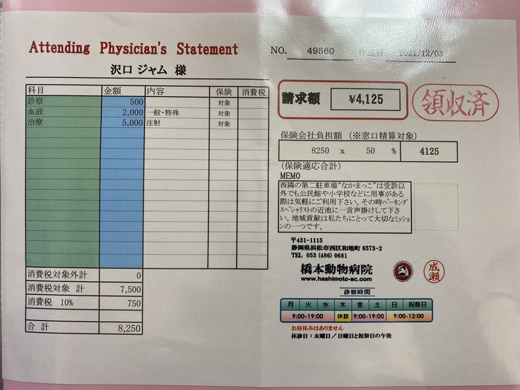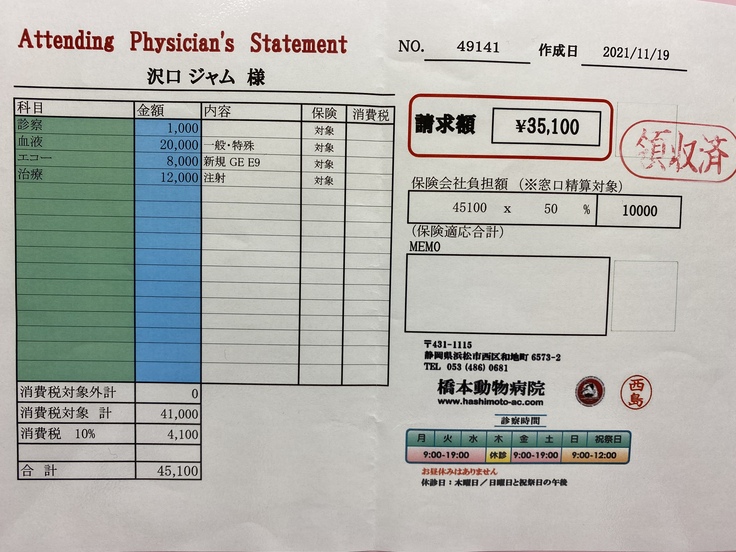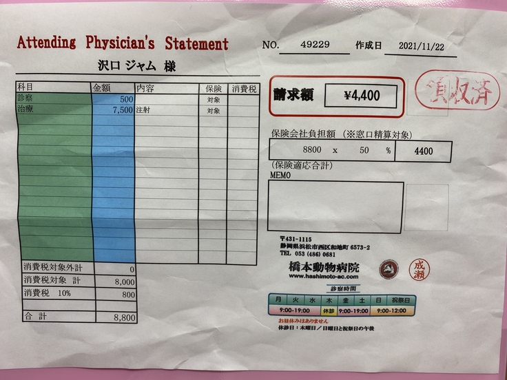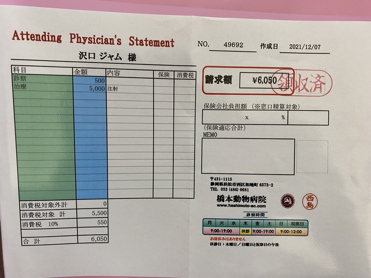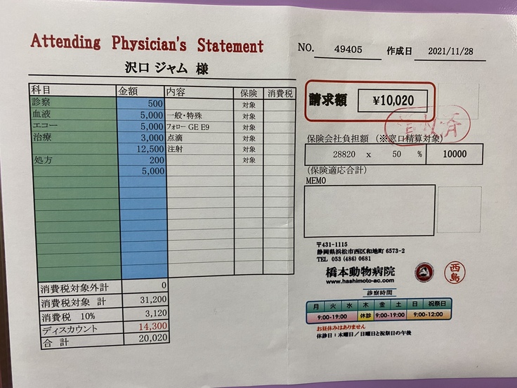 ジャムは先月、病院で腎臓がんの疑いがあると言われました。手術ができるかなどの検査をしに岐阜大の動物病院まで行きました。そこで、腫瘍が大きすぎるしいろんな血管や臓器を巻き込んでしまっているため、手術は難しい。手術したとしても余命はほとんど変わらないと言われました。できる治療は放射線治療、抗がん剤、今までやっていた炎症を抑える薬を飲む。治療はとても限られてしまうそうです。放射線治療は苦しむイメージがあるしやるか迷ったのですが、いろいろ検索していると1年も生きるのは難しいと言われていた子が3年生きたというのがあったり、岐阜大の医療機器は最新のものだったりして、やってみようと思いました。放射線治療は約30万かかると言われました。この前の検査でも10万かかりました。腫瘍に圧迫されて食欲がなくなったりするのを緩和するために放射線をがんに当てて小さくするということを行います。金銭面で苦しくなっているので、みなさんの力を借りたいと思いました。
