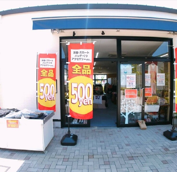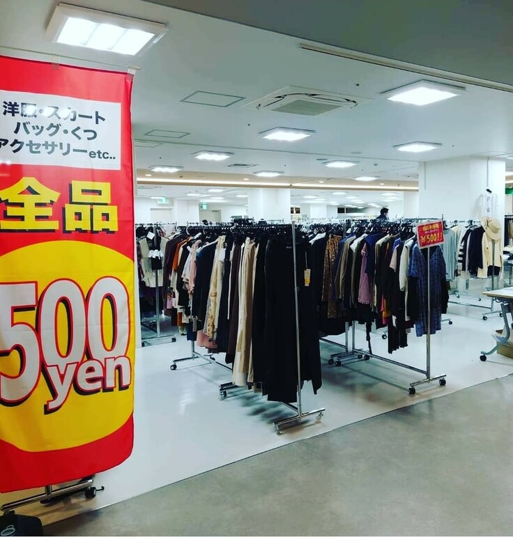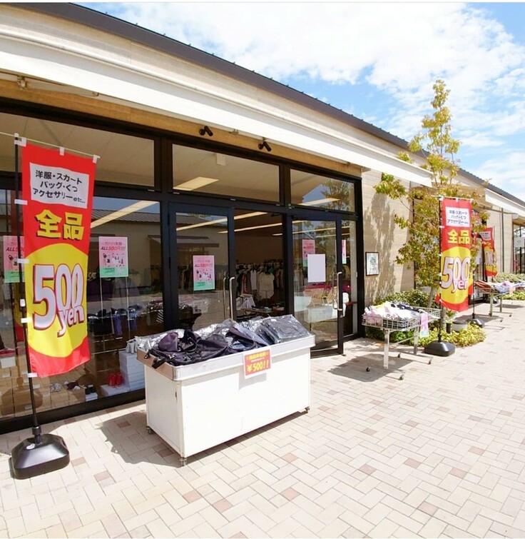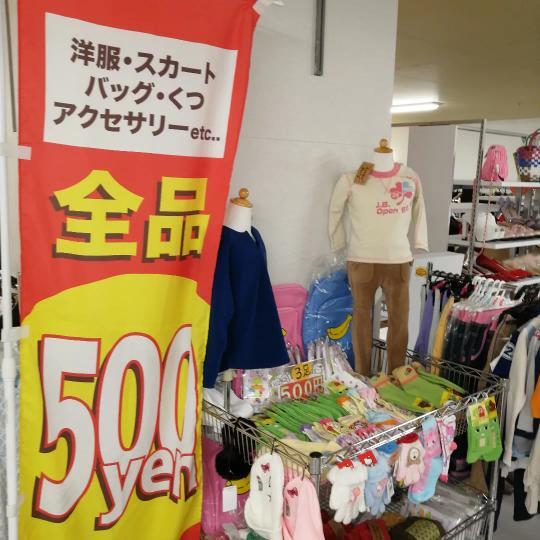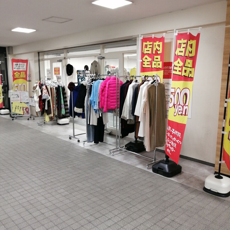 ○500円で新品、未使用の衣料品、アパレル雑貨を販売