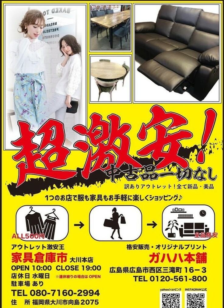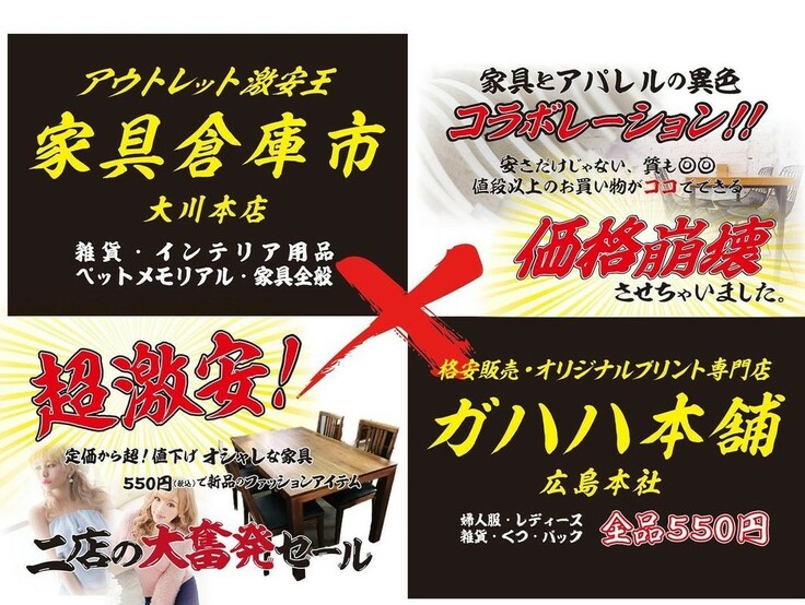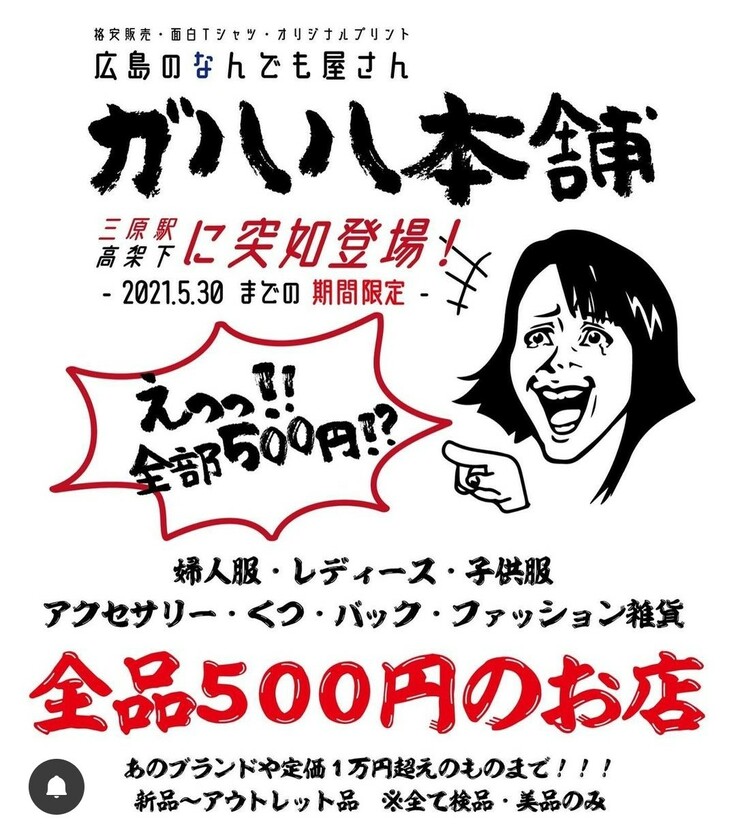 アパレル商材や雑貨を大量に仕入れ、コロナで暗く不安な毎日の中、少しでも楽しみのひとつとして立ち寄っていただき、ほんの一瞬でも「ガハハ」と笑ってもらおうと