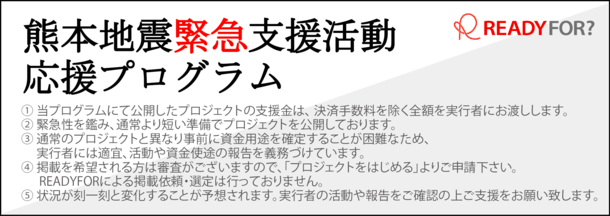 ※熊本地震被災地周辺のみを対象とした活動になります。状況によっては機材のリース契約も検討しております。