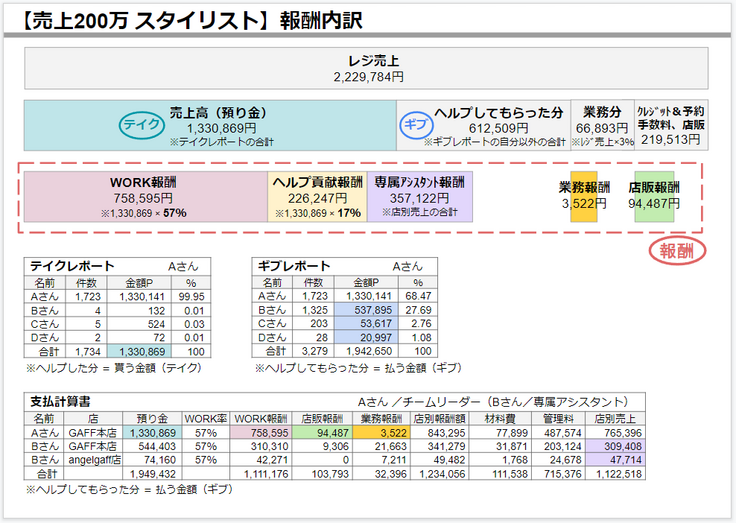 特にチームに所属するアシスタントは、日々の業務に追われたり、売上の配分が分からないので自分の報酬を軽視しがちですが、しっかりと把握する事が大事だと考えています。