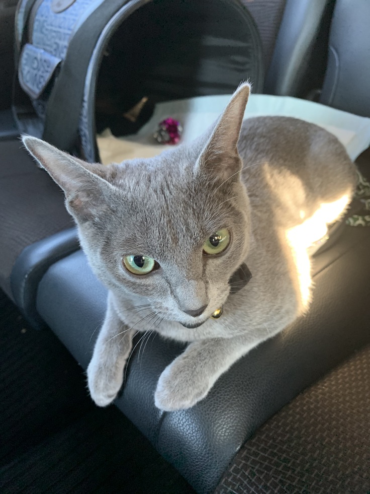 病院に連れていかれて、血を抜かれたりして不貞腐れている車内のすみれです。