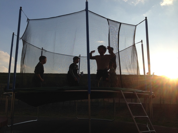 いつもこのトランポリンで子どもたちと遊んでいます!