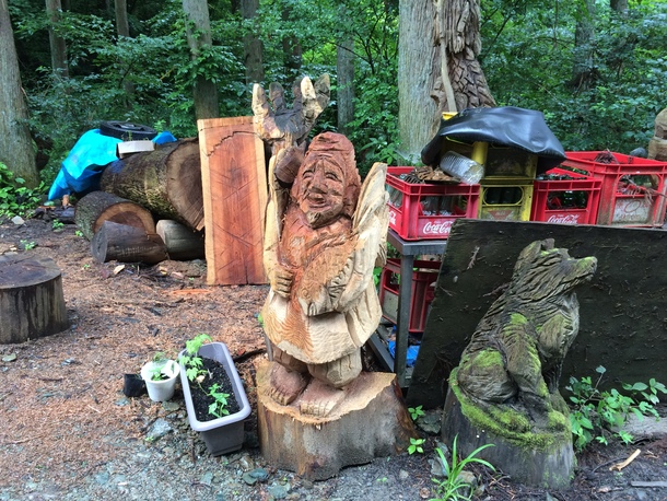 キャンプ場の入り口にはチェーンソーアートで作成した