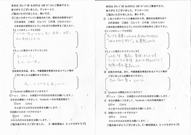 終了後に頂戴しましたアンケート内(ヨガ編)で、
