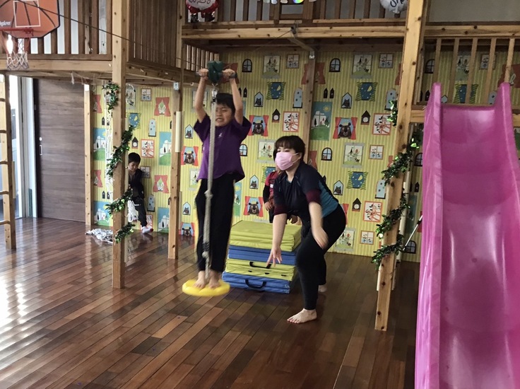 私たちの事業所ではそんな子どもたちに遊びを通して成長していってほしいという想いがあり、事業所内に遊具を設置し、職員も一緒に毎日思いっきり体を動かして遊んでいます。
