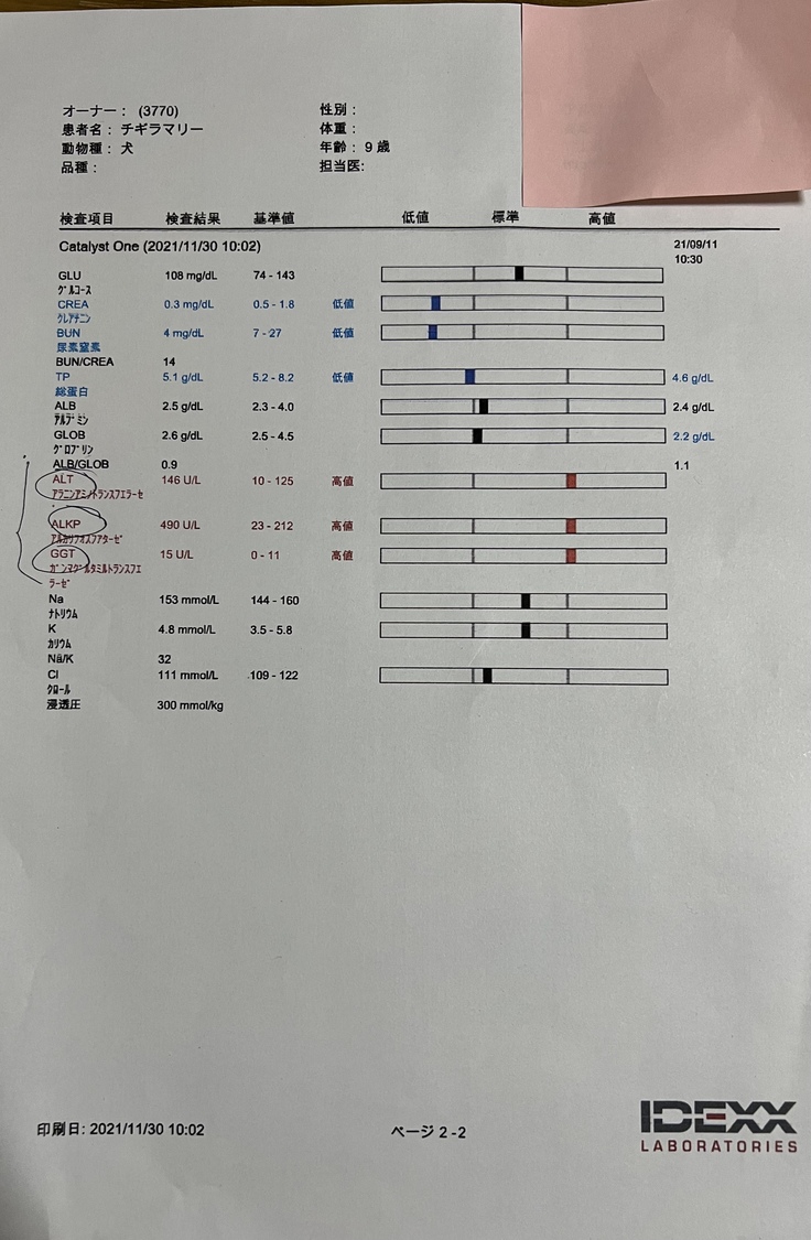 血液検査、超音波検査で診てもらい、腹水が溜まっており、腸の幅?がおかしいと言われました。