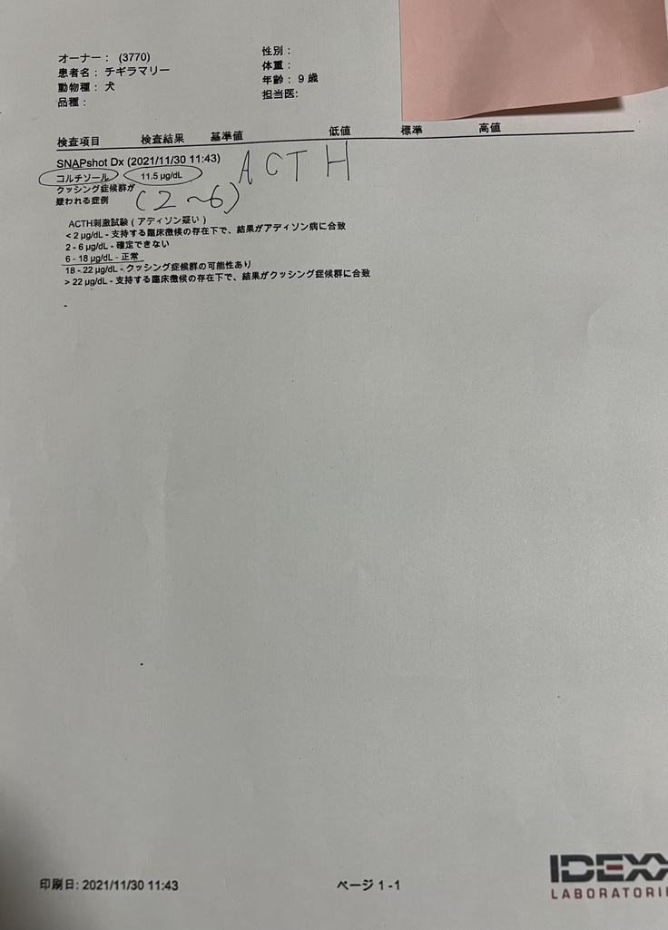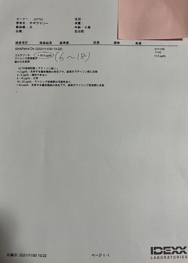 結局、手術は中止。クッシング症候群の検査をして頂き、正式に診断が下りました.