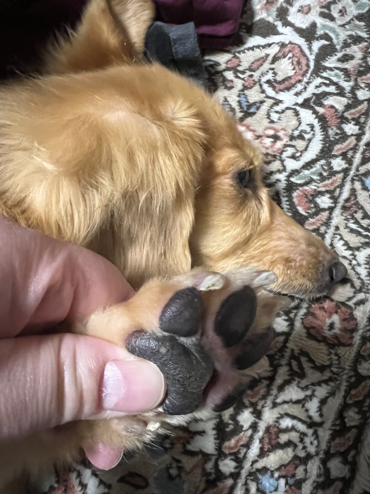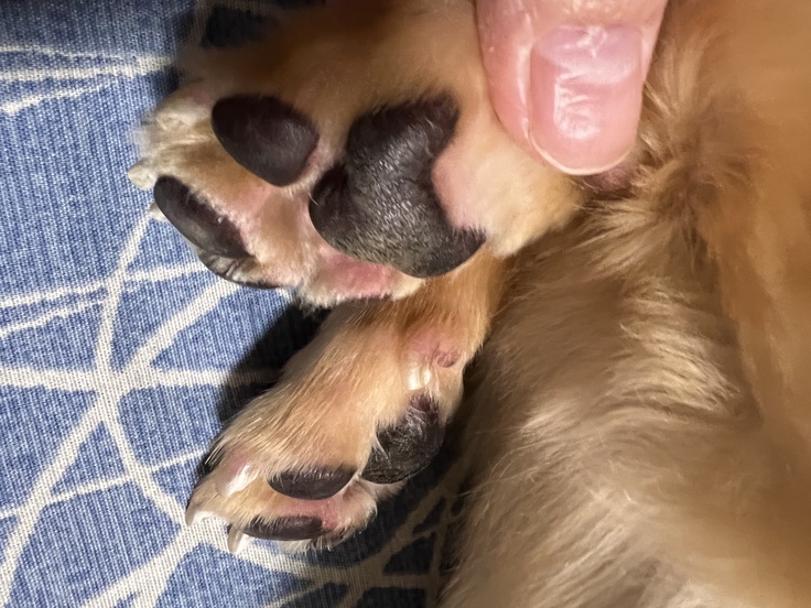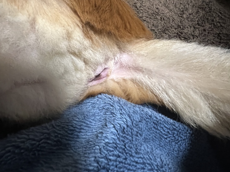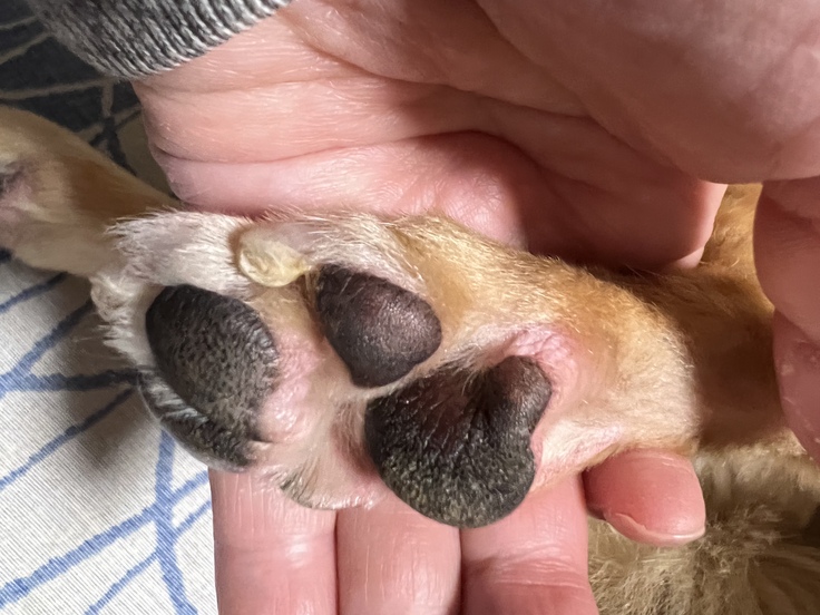 多飲多尿、お腹も以前からふっくらしており、皮膚の乾燥、脱毛、肉球の間が赤くなっておりました。