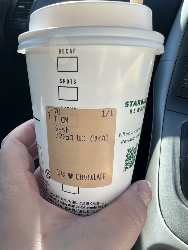 今日は生チョコやってて、でも眠気覚ましだから我慢して、生チョコホイップを追加しました。