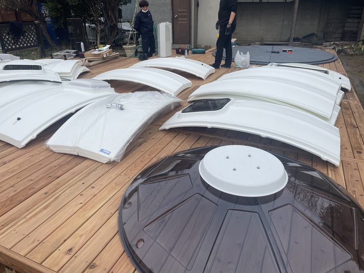1枚目の写真は、ドームを組み立てる前の状態です。