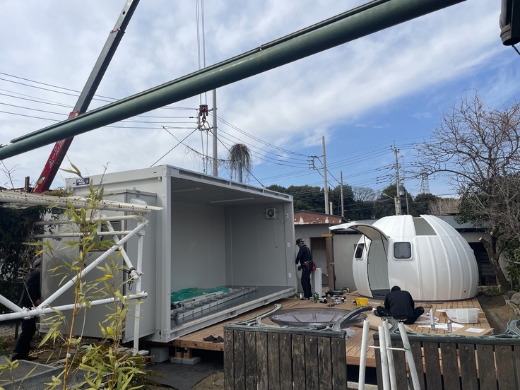 ご報告が遅くなりましたが、2月20日に施設となるドームハウスと全面ガラス張りのプレハブの設置が完了しました。