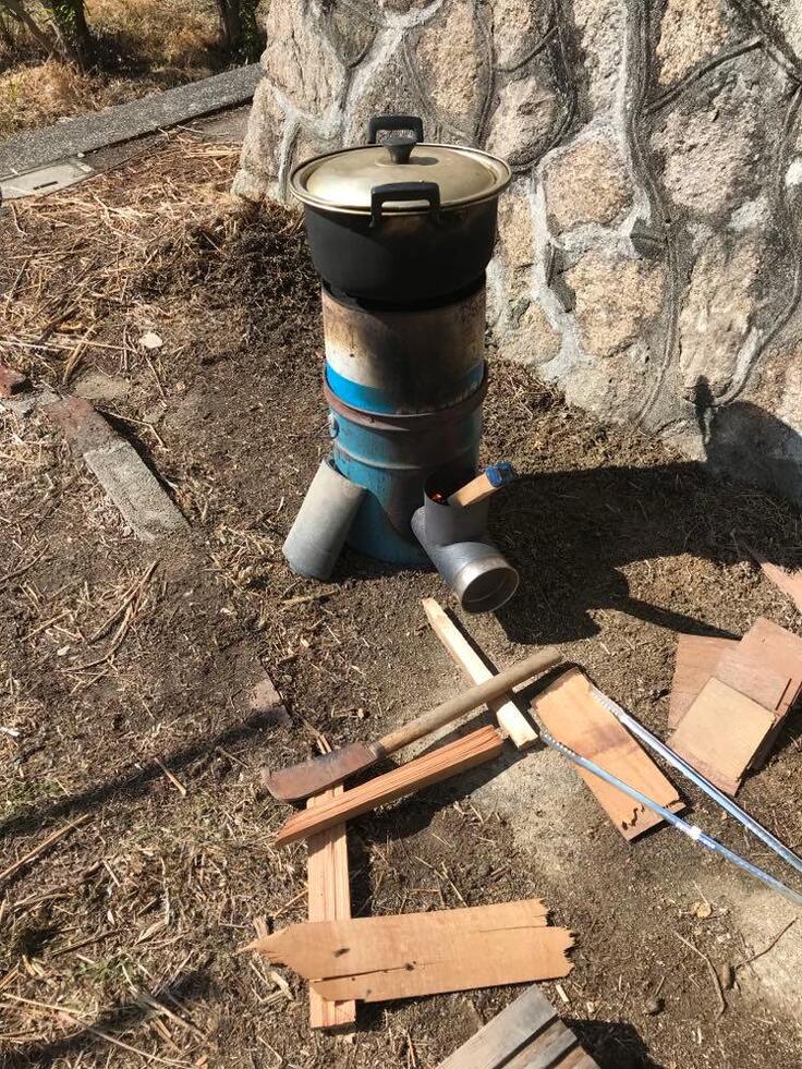 寒い日だったので、豚汁を作ろうとおもって、ロケットストーブを持ってきました。