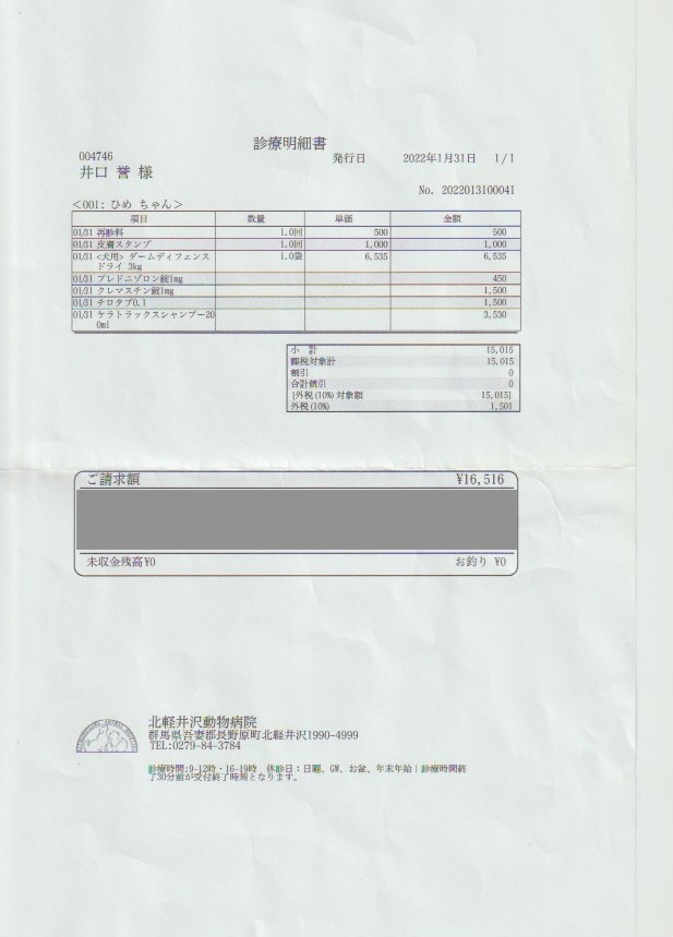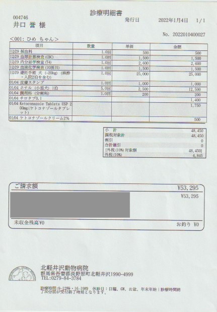 ヒメが我が家に来た昨年11月から今までの治療費の合計が107,007円かかっていまして、