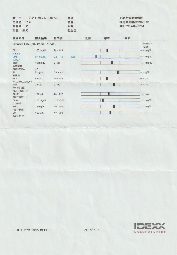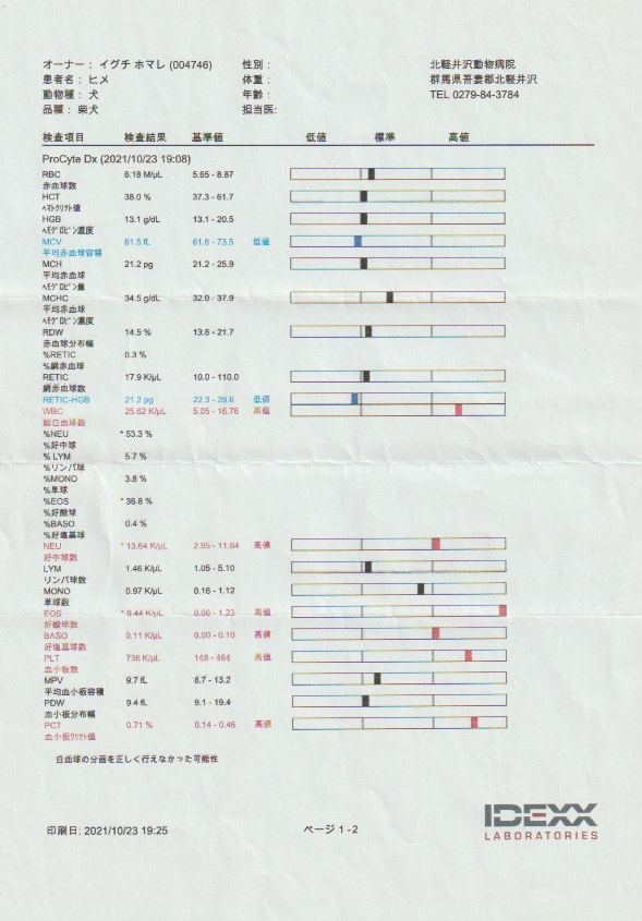 体の状態を見るための血液検査や、皮膚のカビや細菌を検査しました。