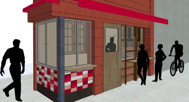 既存タバコ屋の窓口を活かし、レトロな雰囲気を残しつつリノベーションして街並みに合う気軽に立ち寄れる窓売りのカフェスタンド。