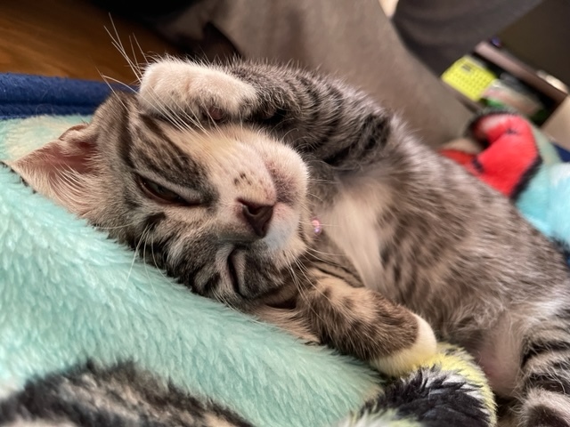禅との出会いは、先住猫の用品を買うためにペットショップを訪れた時でした。一瞬で心を奪われました。先住家族が2匹いたため、かなり悩みましたがこれも何かの縁で運命だと夫婦で話し、家族に迎えることにしました。