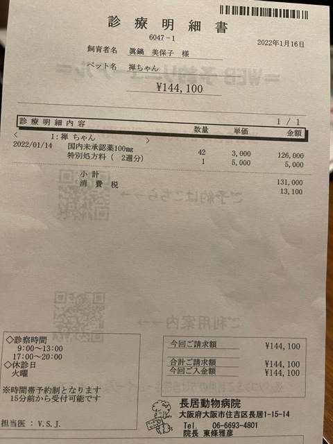 体重増加で変動しますが、2週間に一回のサイクルで病院にお薬をもらいに行きます。(84日分)