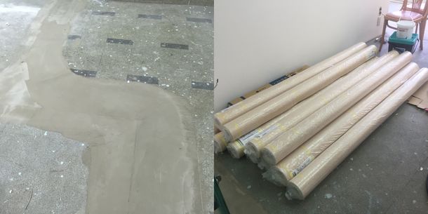 工事もいよいよ最終段階です! 床のパテ埋めが終わり、後はCFを貼るのみ!