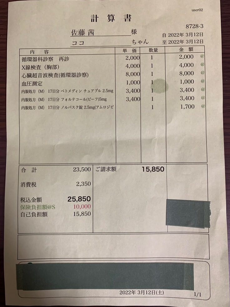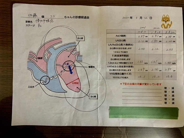 2020年5月の健康診断で僧帽弁閉鎖不全の病気が発覚しました。始めは薬もいらず経過観察でしたが、2021年8月頃から投薬を開始する事になりました。