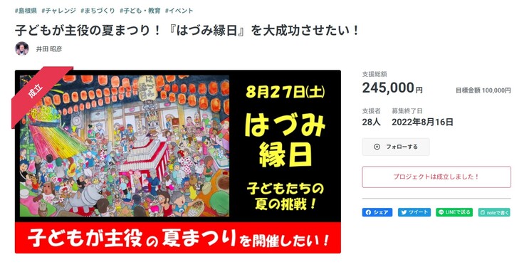 さる8月16日をもちまして、はづみ縁日の支援金を募るクラウドファンディングが終了しました!