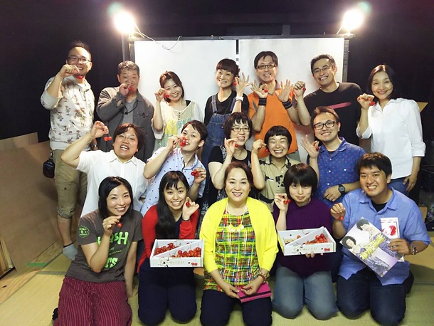 (渡辺えりさんを囲んで熊本演劇関係者)