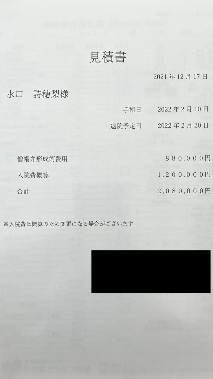 医師の方から手術と入院費の見積書をいただき中身を確認したところ