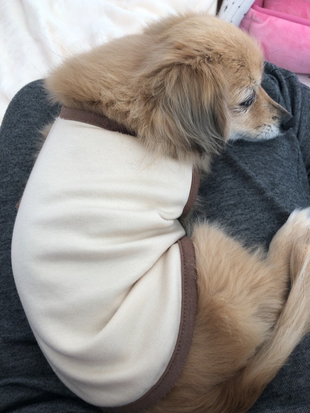 こうして膝に乗せると心臓の音がダイレクトに伝わります。