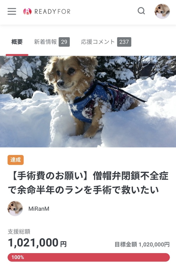 頂いたご支援は、これまでにかかった医療費に充てさせて頂きます。