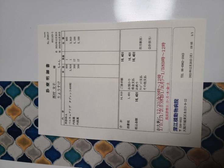 ご飯代金 爪切り代金引換←発作直後のため