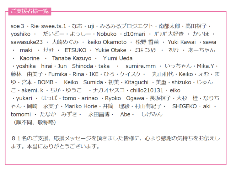 残り11日 クラウドファンディングのご支援者様80名に掲載されていない