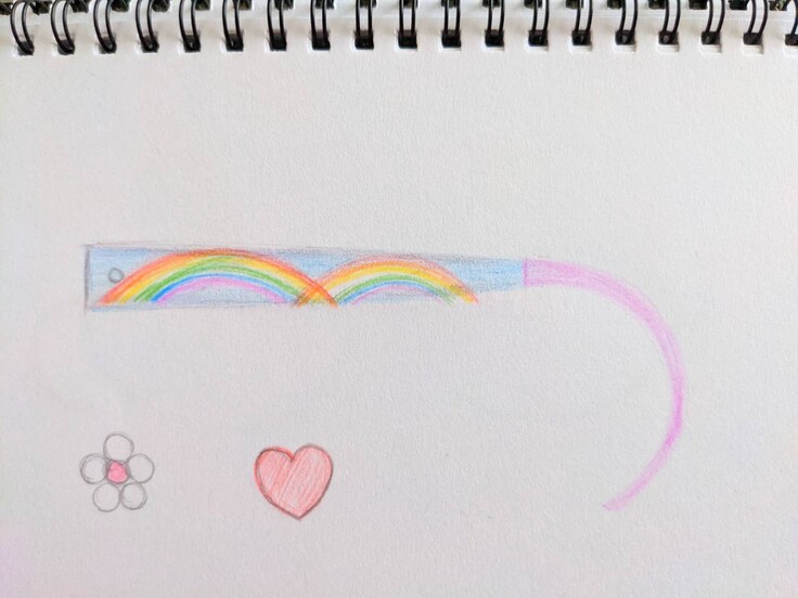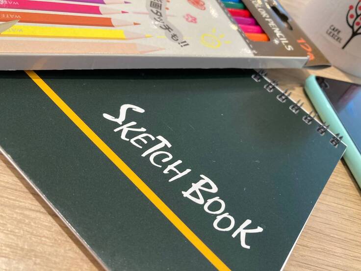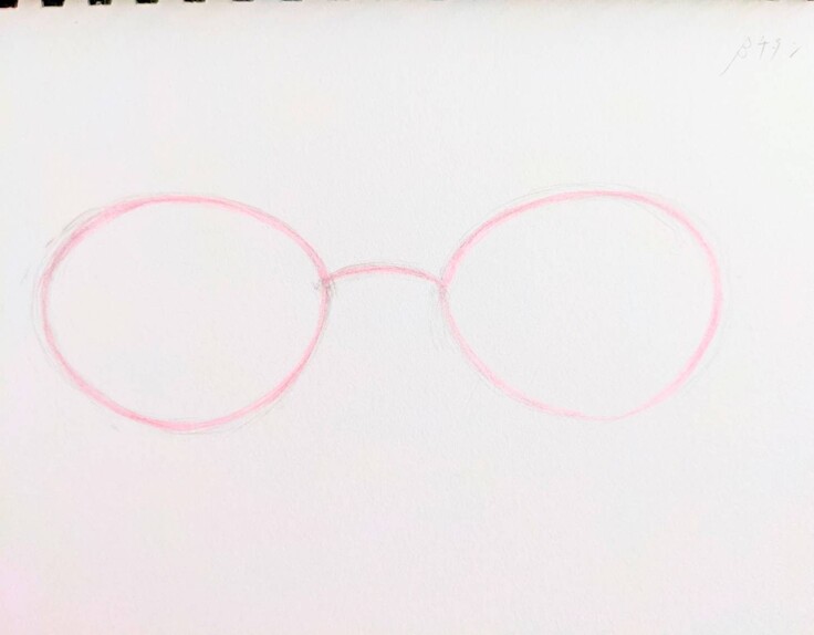 ここから色鉛筆で、孫と、「どんなめがね掛けたい?」
