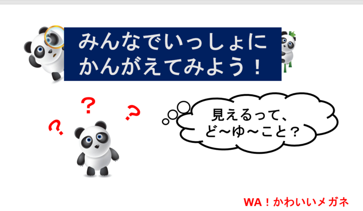 そこで、幼少期から、みんなが、目やめがねの事を自然に知り、学び、触れ合う事で、幼い子ども達がめがねを掛けていても違和感がない世の中になればいいのではないかと、思いました。